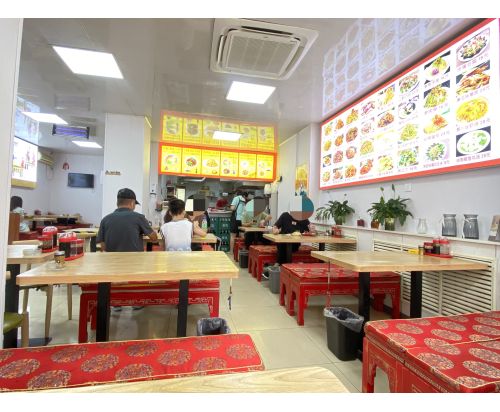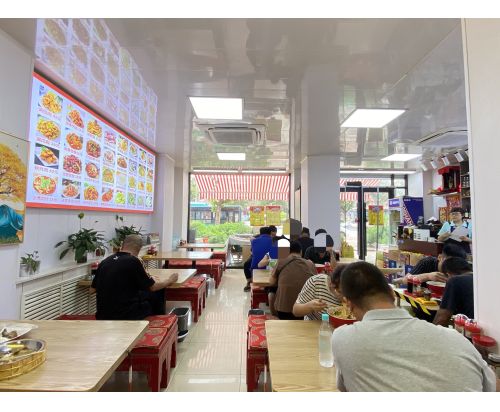 店铺位置在姚家路主道边上,现在经营拉面馆和炒菜,整体面积120平,户型方正,南向大门头,采光好,里面能摆10-15张桌子,可以根据自己的经营理念随意摆放,有单独的厨房,够大够用,有独立卫生间,都是自己装修的,楼上还有个阁楼,可以 住 人,也可以放货,前后两个门,前门有遮阳蓬,可外摆,后门自己搭建个库房,有上排烟,都是新换的,里面设施设备齐全,手续齐全,接手可直接营业,大门头,门前没有遮挡,很显眼,周边成熟居民区,新北广场,和学校等,对面公交站点,人流量大,消费能力强,老客维护的好,现每天平均营业3600~4000不等,老板因为身体原因,诚心转让,感兴趣的老板随时联系我